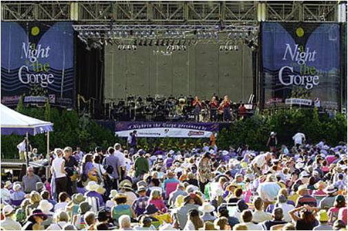 The stage, which was set up for the symphony orchestra, dwarfs the 7 Gassers.